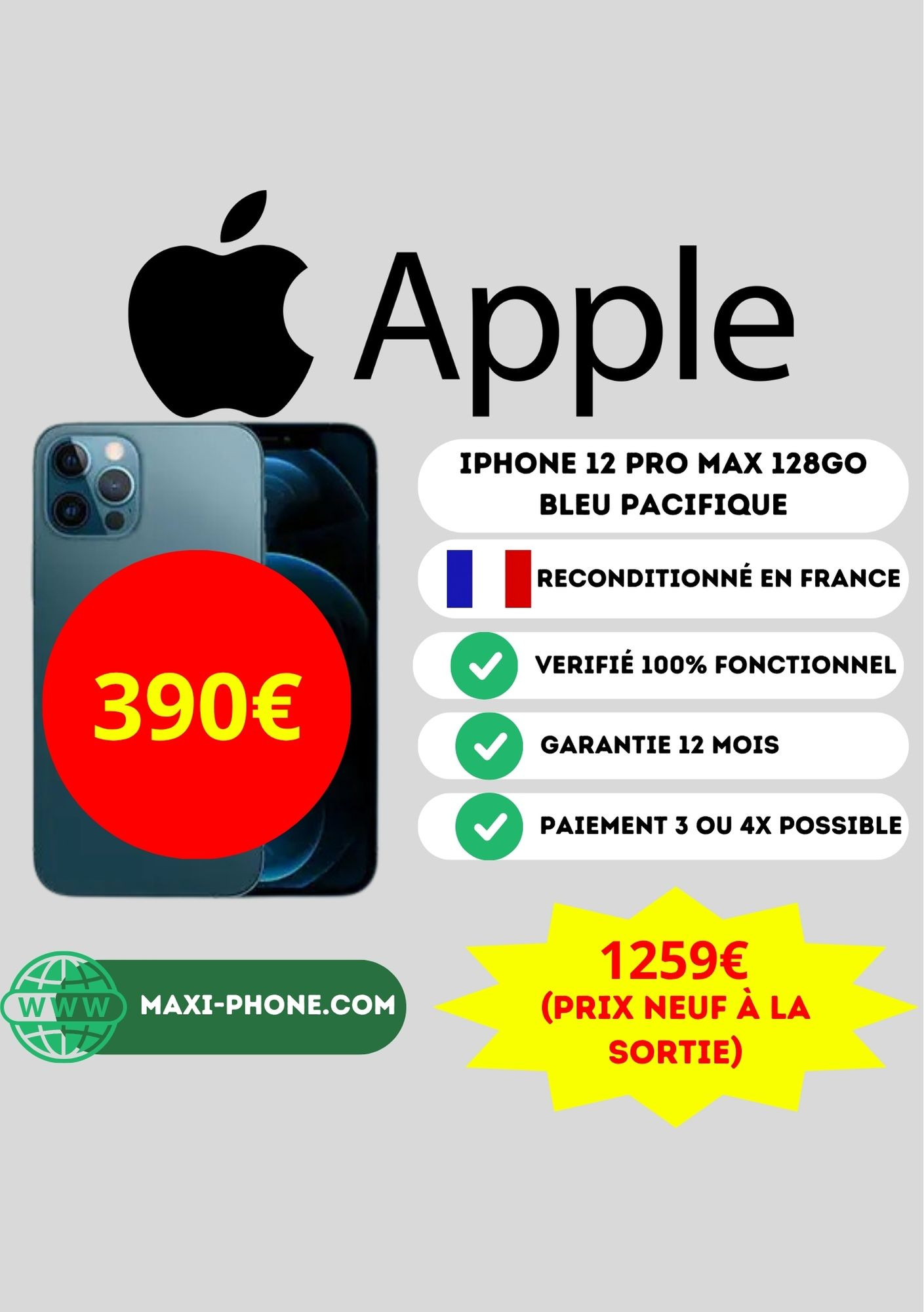 IPHONE 12 PRO MAX 128Go Bleu Pacifique reconditionné en France par nos soins