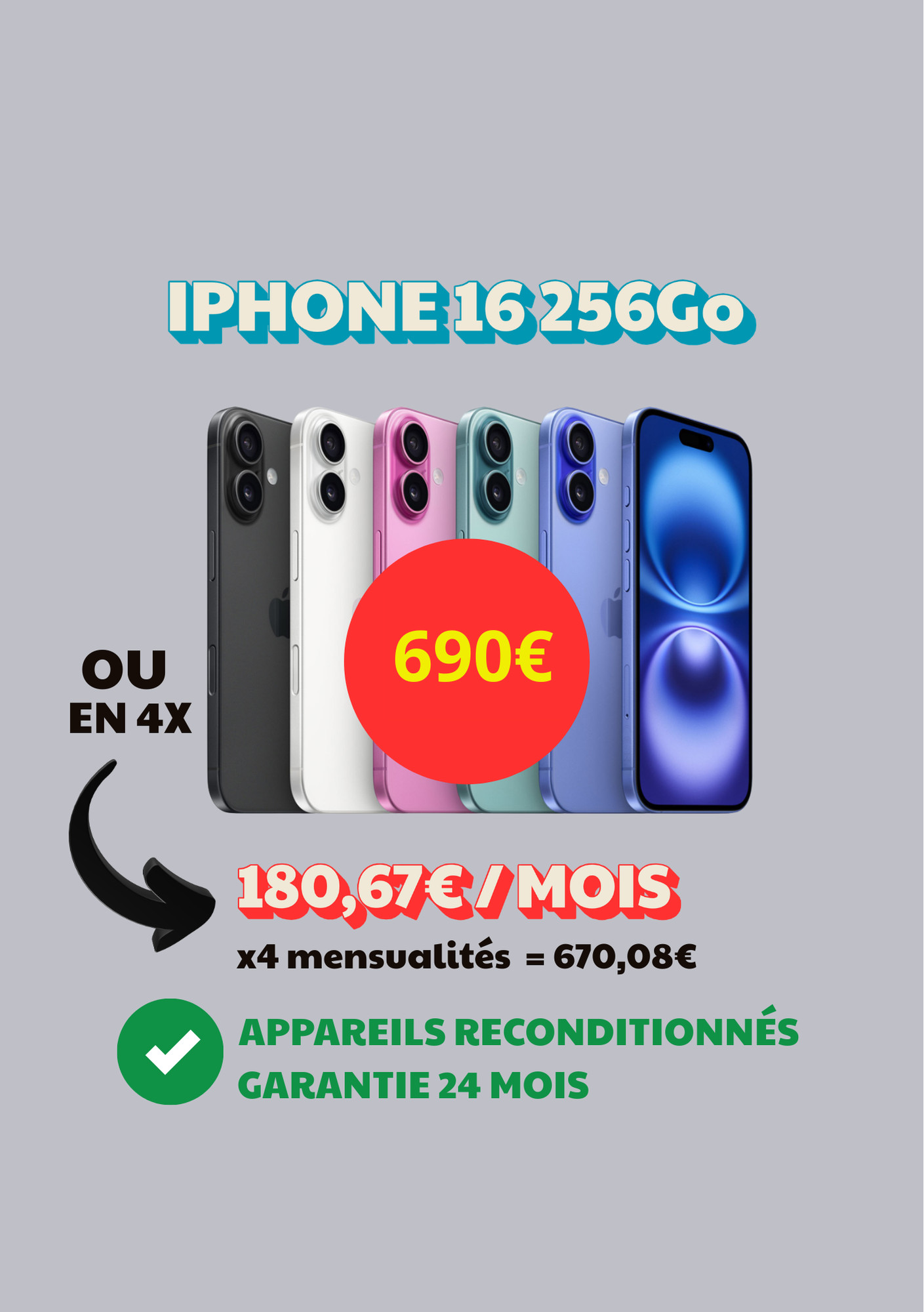 Iphone 16 256Go reconditionné en France par nos soins