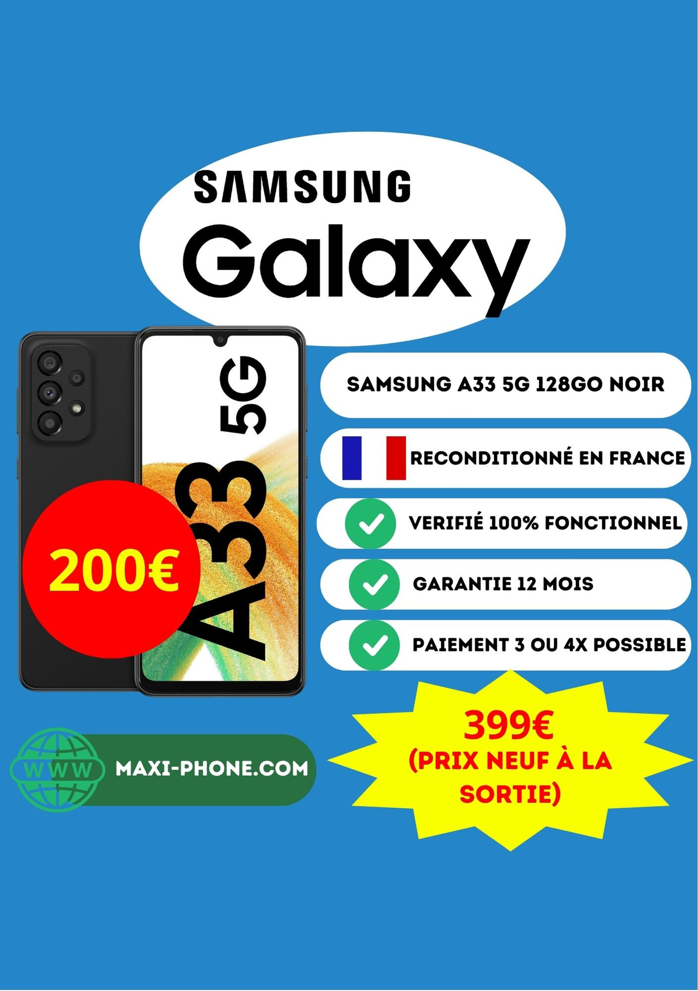 Samsung A33 5G 128Go Noir reconditionné en France par nos soins