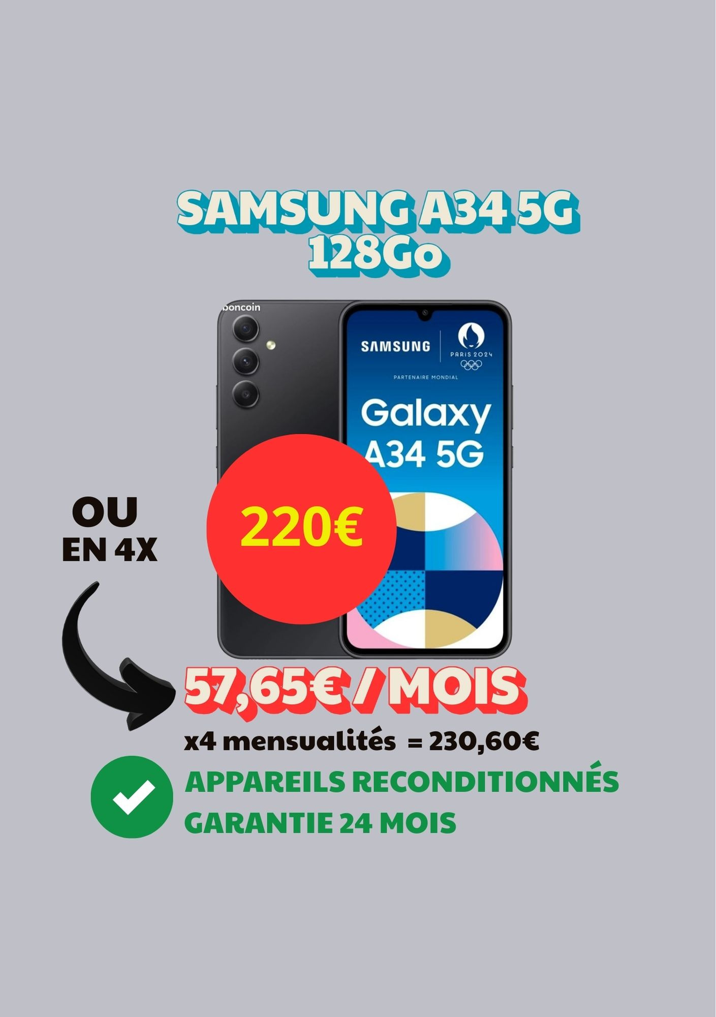 Samsung Galaxy A34 5G 128Go reconditionné en France par nos soins