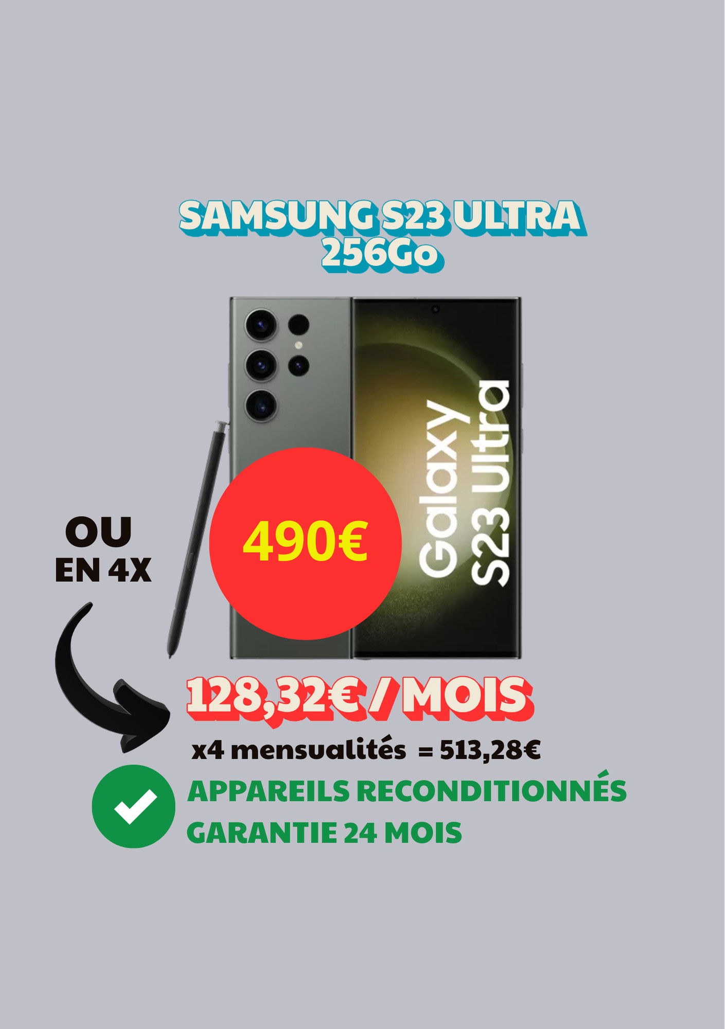 Samsung Galaxy S23 ULTRA 5G 256Go reconditionné en France par nos soins