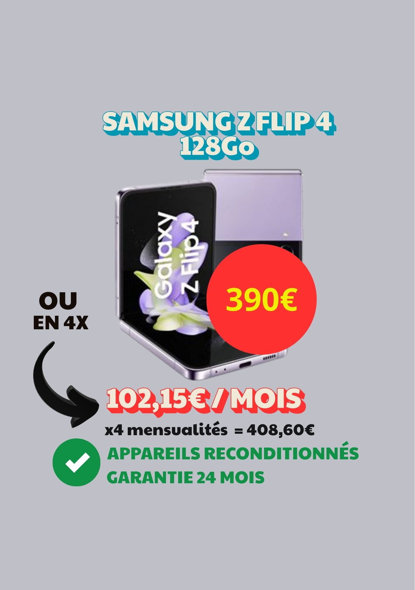 Samsung Galaxy Z FLIP 4 128Go reconditionné en France par nos soins